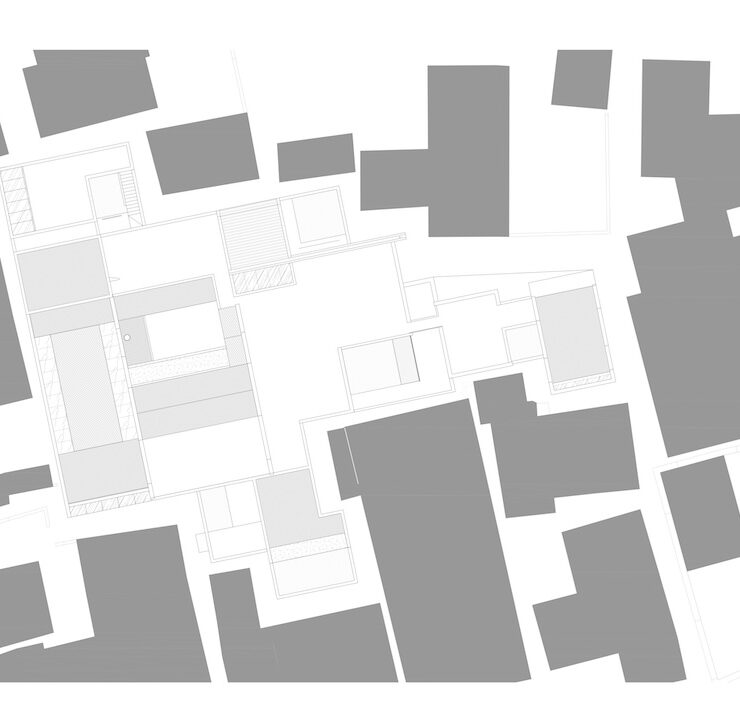 Alcuni elementi pre-esistenti – un albero di magnolia di 200 anni e un antico pozzo – sono stati conservati, inserendo patii in ciascun blocco edilizio e tra di essi. Questo approccio consente una transizione senza soluzione di continuità tra l’interno e l’esterno degli edifici e una connessione armoniosa con la natura che, data la collocazione urbana, è stata portata all’interno del complesso.