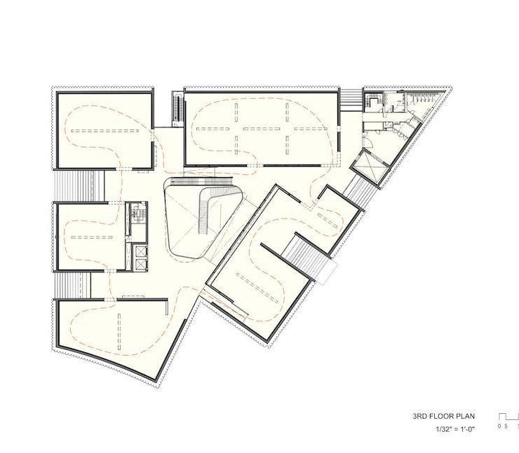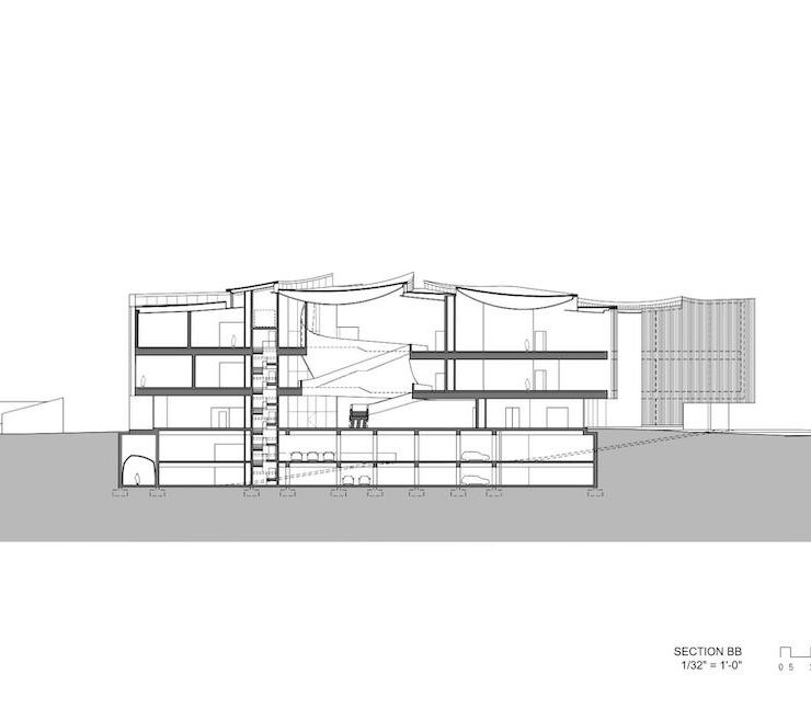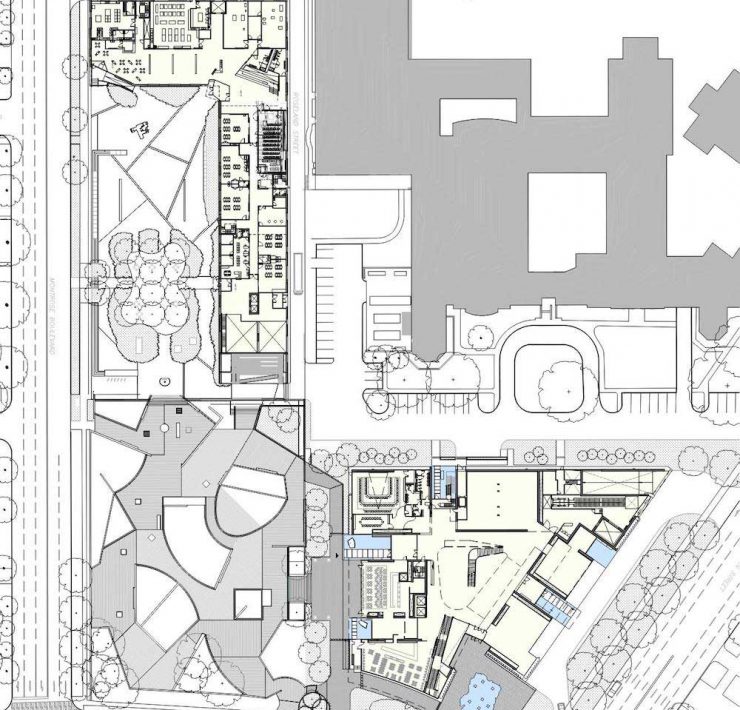 Precedentemente, nel 2018, Steven Holl Architects aveva completato la Glassell School of Art, situata accanto al Kinder Building. Quest’ultimo si trova nel triangolo inferiore più estremo del lotto sul quale si sviluppa il campus, ed è il primo edificio che si incontra provenendo dalla strada principale. Il suo ruolo, quindi, diventa quello di far dialogare le architetture della città con quelle dell’istituzione culturale.