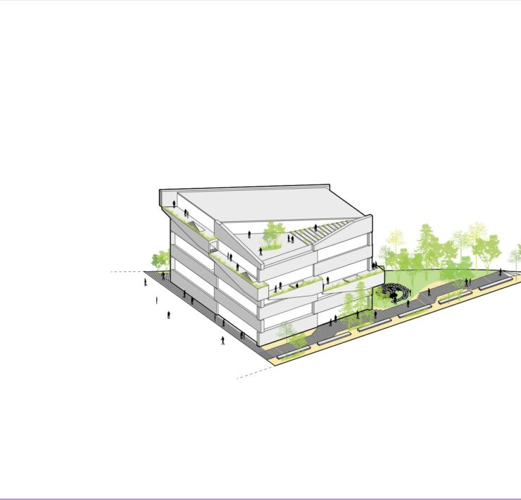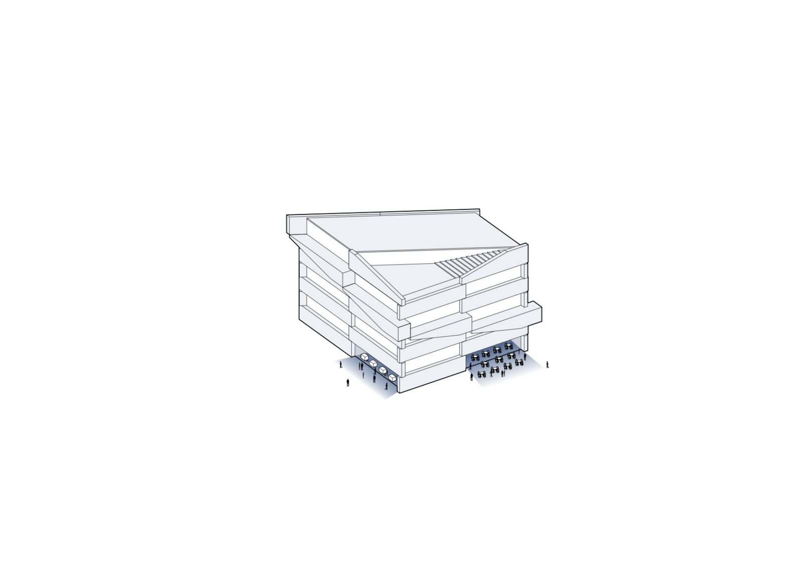 L’edificio rappresenta la prima applicazione del calcestruzzo Uni-Green, sviluppato in collaborazione con Unicon, in cui una parte del clinker di cemento viene sostituita con argilla calcinata e calce di riempimento, con una riduzione di CO2 di circa il 25% rispetto a una miscela di calcestruzzo tradizionale equivalente.