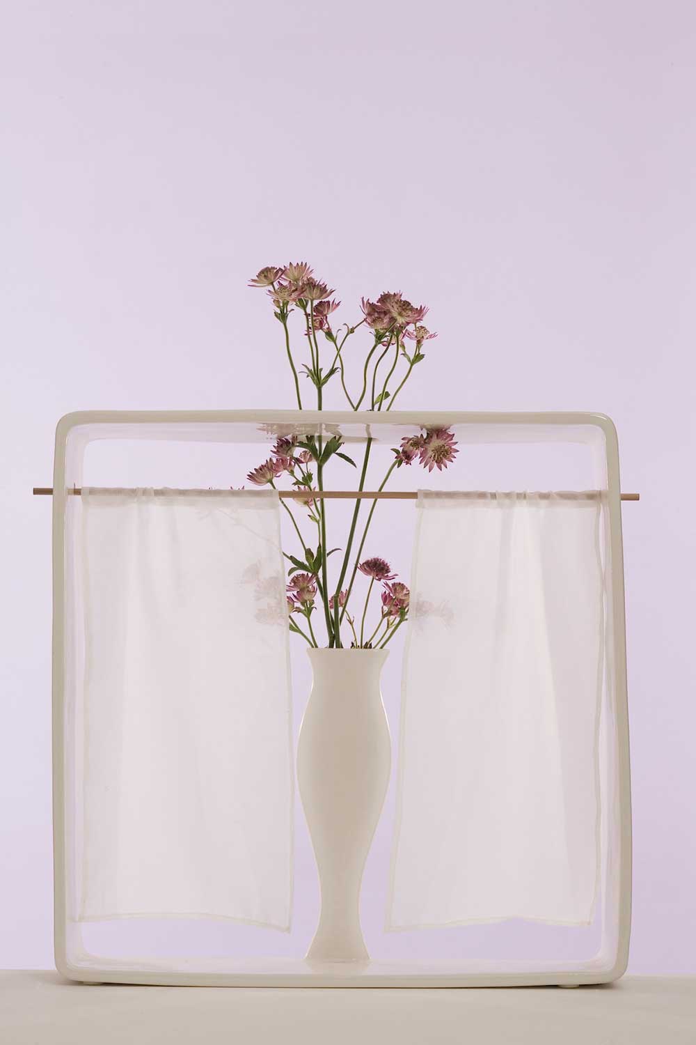Andrea Branzi, Collezione Portali, vasi in ceramica, 50 x 10 x 50 cm. "Portali è una collezione di 18 ceramiche bianche, concepite come se fossero dei piccoli ambienti tutti uguali; dentro ciascuno di questi portali si colloca però un vaso sempre diverso (o un tronco d’albero). Si tratta dunque di una serie di micro-spazi, in parte ripetitivi e in parte variati, che nel loro insieme creano un paesaggio architettonico fiorito; infatti più che una collezione di vasi “PORTALI” mi sembra un progetto ambientale, il persistere di un pensiero semplice che si rinnova nel tempo e nello spazio, come una metrica o pentagramma. Come mi succede spesso negli ultimi anni infatti, il vero centro dei miei interessi sono i fiori; per la loro misteriosa presenza profumata e colorata dentro allo spazio dell’uomo. Come gli ikebana giapponesi attorno a cui si sviluppa l’architettura, o i tokonoma che raccolgono in una sorta di piccole nicchie la letteratura e i simboli domestici più privati. Credo che uno dei compiti del design sia infatti quello di saper aggiungere al mondo costruito non dei decori inutili, ma degli spazi autonomi, dei micro-luoghi dedicati a ciò che può sembrare superfluo, ma senza il quale tutto diventa inutile; lo spazio per i fiori, per gli oggetti sacri delle civiltà laiche". Andrea Branzi, 2007