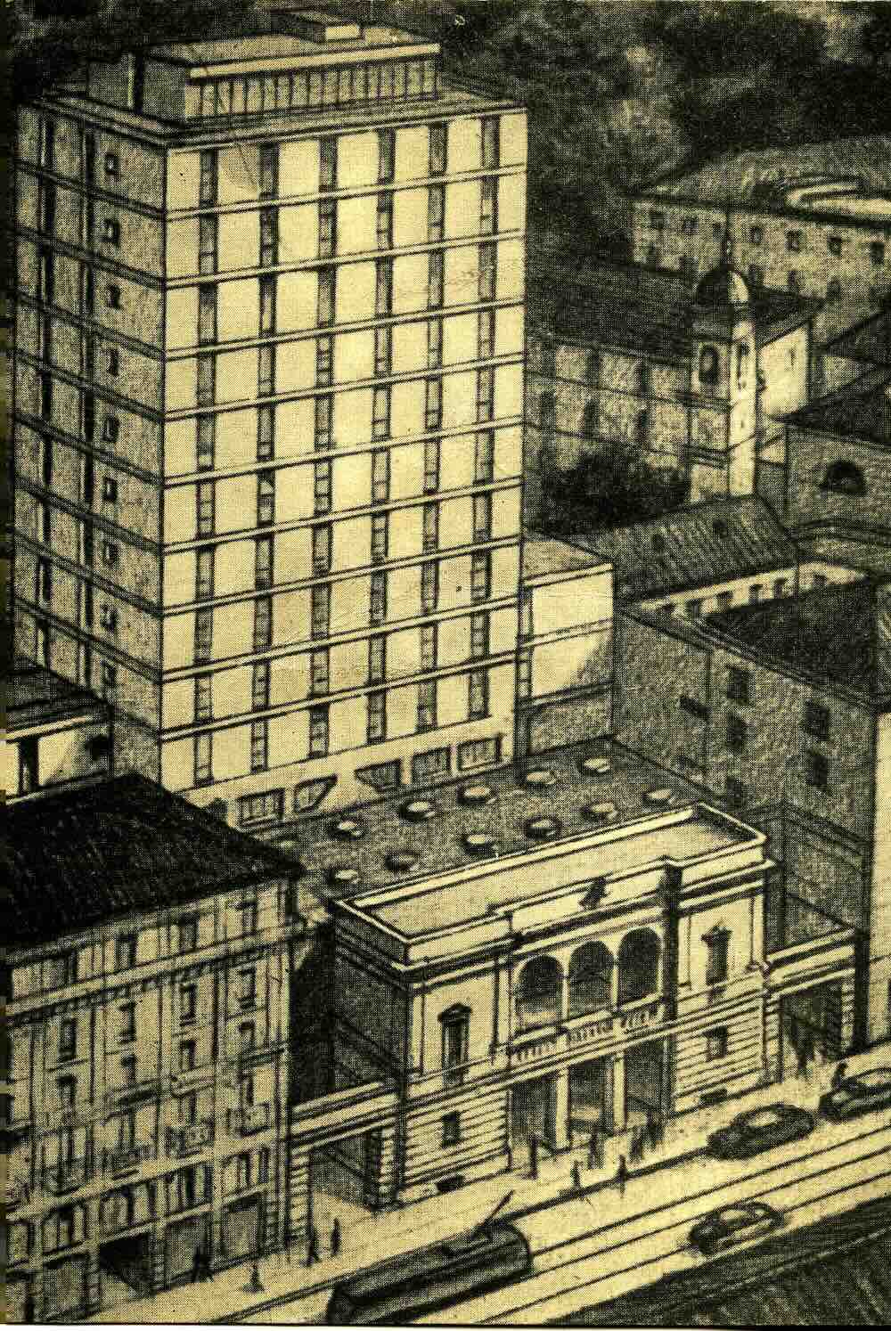 Il progetto dei fratelli Castiglioni è costituito da un corpo sviluppato in orizzontale destinato alle mostre, su cui si innesta una torre a uffici 53 metri, arretrata rispetto alla facciata del Beltrami che era scampata ai bombardamenti.