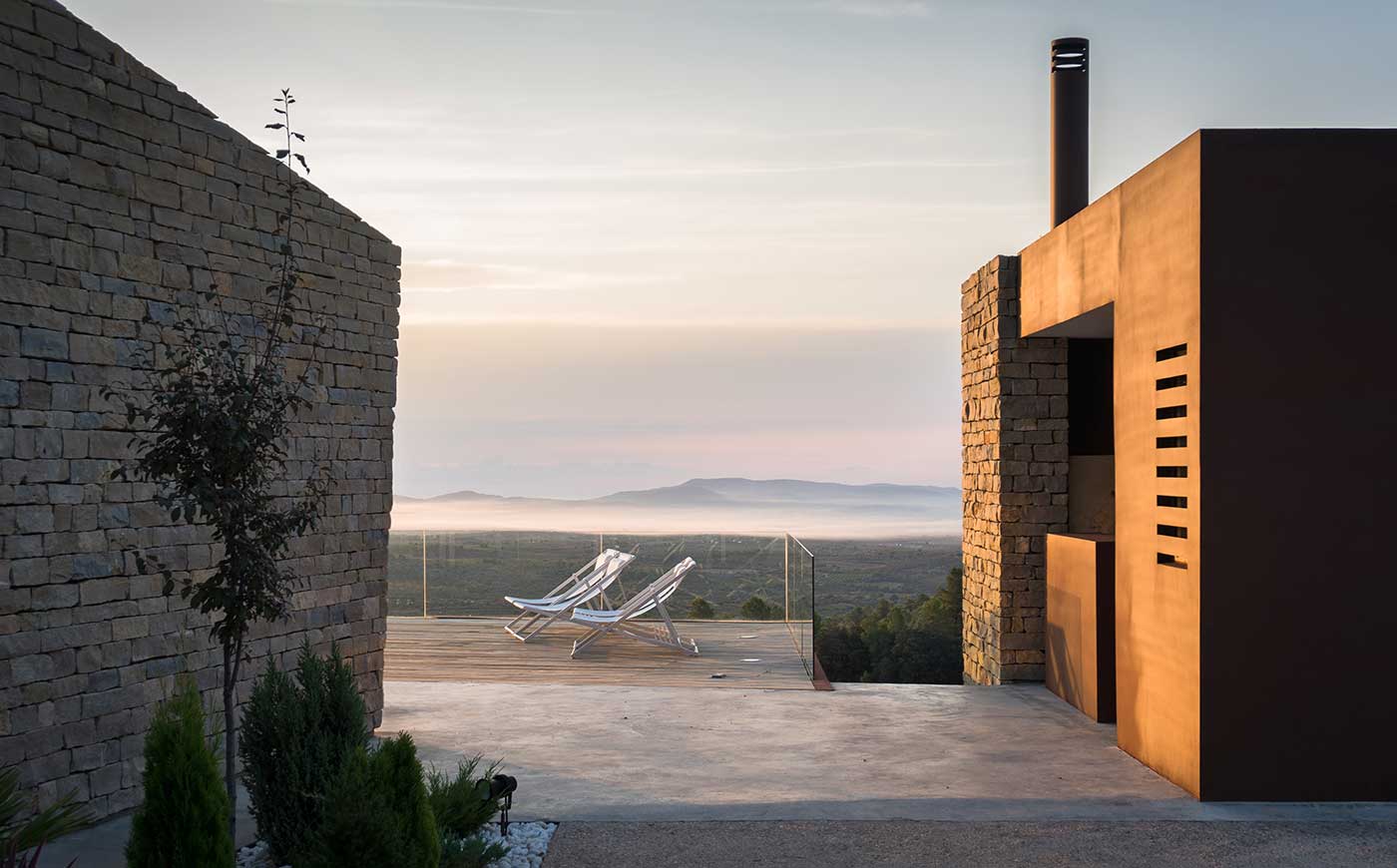 La nuova villa unifamiliare nell’entroterra di Castellón non fa eccezione: integrata e radicata nel paesaggio, è un’architettura che rispetta l’ambiente naturale adattandosi all’orografia del terreno.