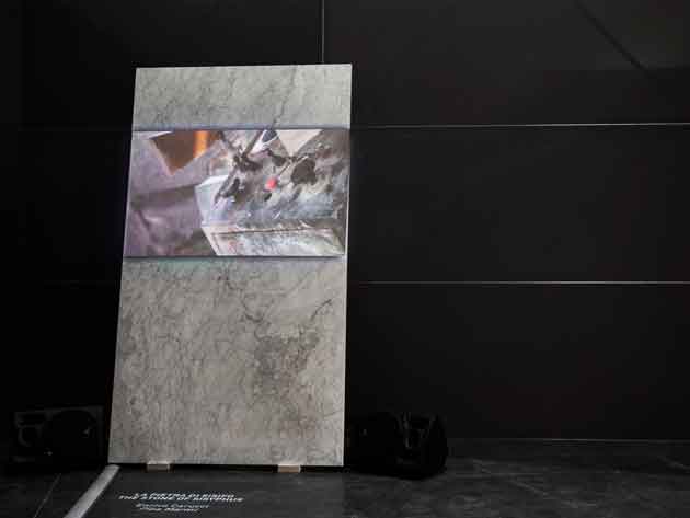 Prendendo spunto dall’installazione dell’architetto spagnolo Alberto Campo Baeza per Piba Marmi, la video-installazione proiettata su una lastra di marmo svela l’anima incorporea della materia litica.