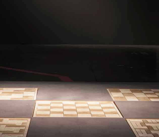 Le formelle di marmo posate su un materiale elastico generano un’esperienza multisensoriale interattiva che dona alla pietra possibilità espressive inedite.