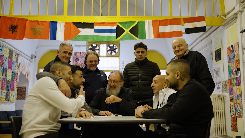 Michele De Lucchi durante un incontro con alcuni detenuti partecipanti al percorso educativo e formativo attivato all’interno della casa circondariale di San Vittore, parte integrante del progetto Porte della Speranza.