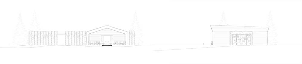 Il progetto di noa* si articola in due piccoli edifici di cubatura contenuta, tra loro collegati da un asse trasversale. Uno dei due blocchi ospita la nuova zona ristoro, con il classico tetto a capanna, una cucina semiaperta con servizio self-service e un bancone per le bevande. La struttura prosegue poi con una loggia aperta e una terrazza con vista sul lago e sulla zona balneare di nuova concezione. Sul lato opposto sorge una nicchia completamente apribile con divisori in legno: all’interno un secondo bancone dove i bagnanti, ma anche pedoni e ciclisti, possono acquistare cibo da asporto.