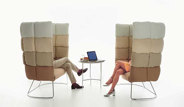 Progettato da Raffaella Mangiarotti e Ilkka Suppanen, Undecided di Manerba è un sistema di sedute – poltroncine e divani, qui nella versione rivestita in tessuto tecnico FiftyShade by Rubelli – per ambienti in perenne mutazione che permette di creare spazi di conversazione riservati, eleganti e informali al tempo stesso, comodi e isolati acusticamente, caratterizzando gli ambienti con il colore e la morbidezza delle forme. |