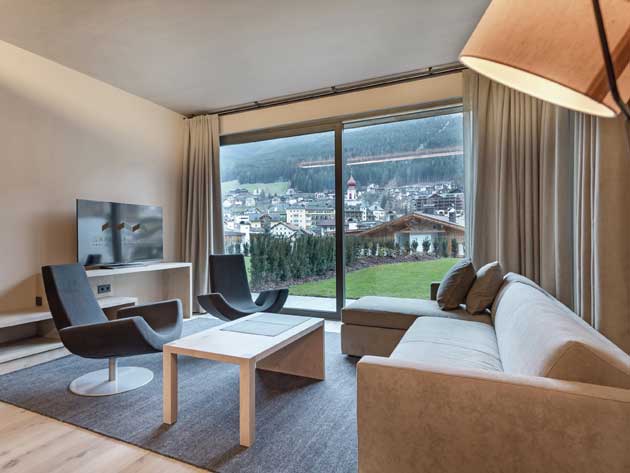 | Interno del Gardena Chalets con finiture e arredi di pregio |