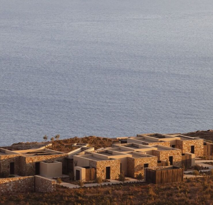 Se l’architettura, la pietra, la scelta di tonalità chiare e naturali e il progetto di paesaggio, con specie autoctone e tetti verdi, confermano l’appartenenza al luogo, nello stesso tempo il tutto è pervaso da un lusso non ostentato, attraverso dettagli su misura (come la falegnameria) e l’uso di marmo del monte Olimpo, travertino, legni di rovere e bambù per i pergolati. Un lusso cui contribuisce in larga misura la posizione e la dimensione del sito e un progetto di paesaggio che integrandosi con l’architettura collega senza soluzione di continuità l’esterno con l’interno. I percorsi che lo attraversano giungono infine alla baia privata sul mare, dove possono ormeggiare gli yacht dei proprietari.
