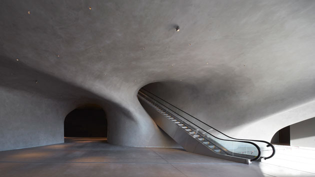 L’ultimo livello sorprende i visitatori con uno spazio espositivo aperto dominato dalla volta porosa e abbondantemente illuminato dalla luce naturale che filtra attraverso le aperture vetrate e i lucernari.
