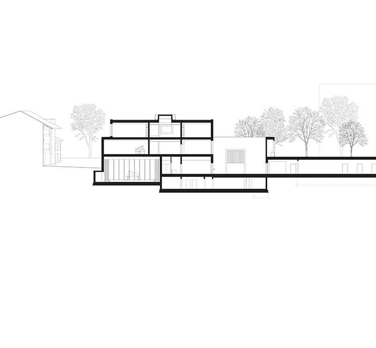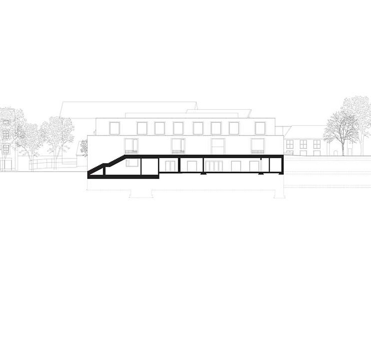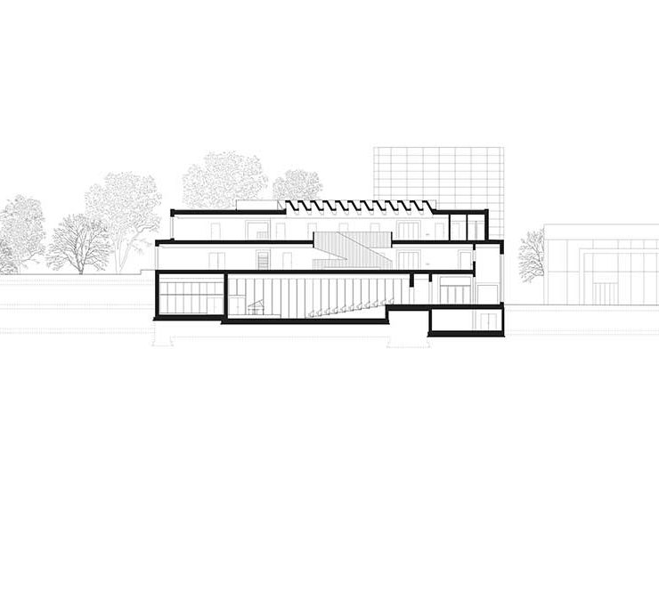 Anche l’organizzazione funzionale, insieme a quella spaziale, permette di modulare il grado di indipendenza tra la Scuola e la sala con palcoscenico, situata al piano terra e parzialmente interrata, che può ospitare concerti aperti al pubblico.