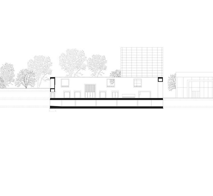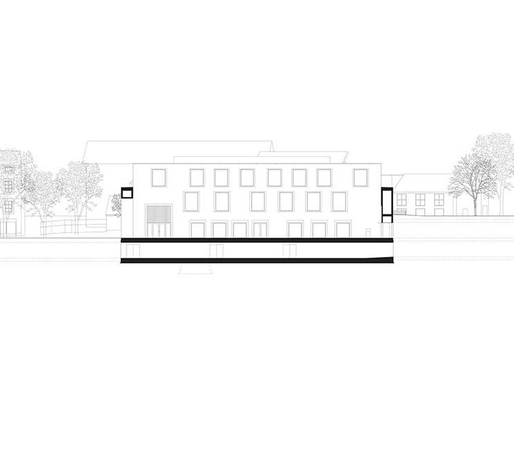 I prospetti sono inoltre concepiti come dei paramenti murari i cui trattamenti mutano in relazione al contesto per entrare in risonanza con gli edifici circostanti.