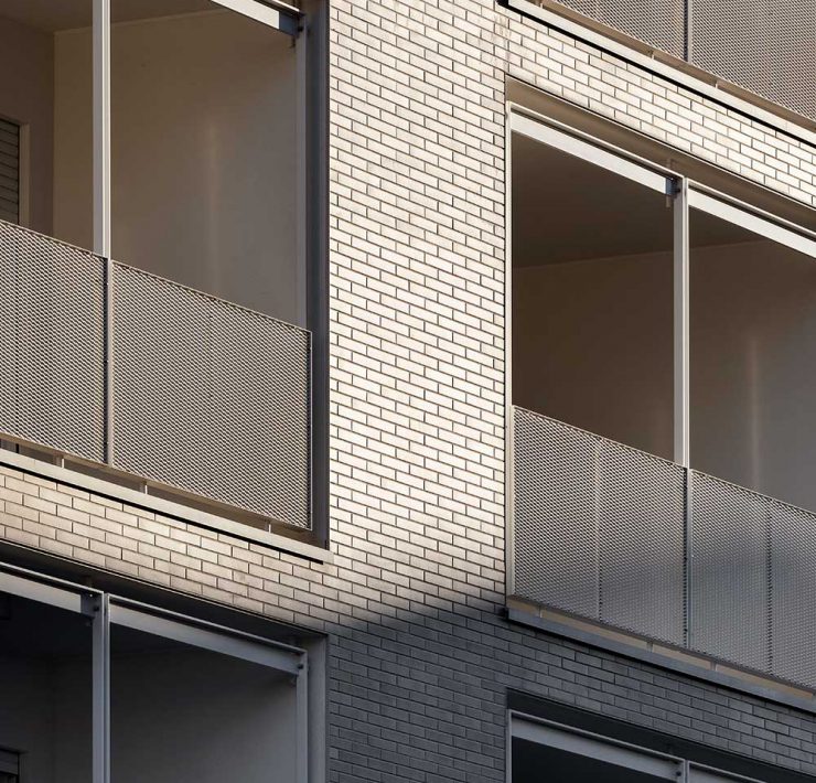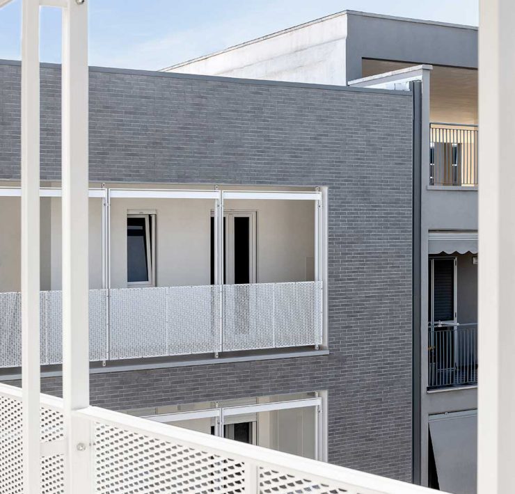 «Il progetto, pensato come il ‘punto zero’ di una riqualificazione generale di questo pezzo di città, rompe con le forme tipiche dell’edilizia convenzionata – spiega Massimo Alvisi, co-fondatore dello studio. Ci interessava lavorare sulla tipologia e sulla qualità degli spazi, non solo sul disegno. Per bilanciare la gravità del volume, il cui profilo arrivando a terra si piega verso l’interno per ampliare lo spazio pubblico, abbiamo immaginato una serie di logge leggere e permeabili appese alla facciata, attribuendo ‘democraticamente’ a tutti uno spazio in più. Le logge, infatti, da un lato si proiettano verso l’esterno, quale estensione naturale degli appartamenti, dall’altro, con le loro superfici bianche e perforate, riflettono la luce naturale all’interno dell’ambiente domestico. Inoltre, aggiungono dai 10 ai 15 mq in più agli appartamenti, arricchendo la qualità spaziale dei tagli tipologici più modesti e limitati».