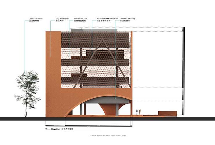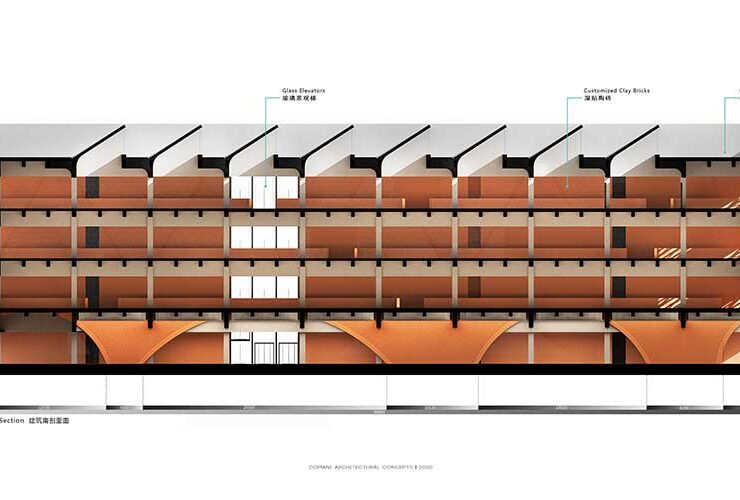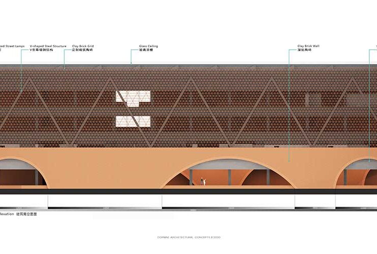 L’idea è quella di dare un senso ‘cerimoniale’ al complesso utilizzando, reinterpretati tecnologicamente, materiali della tradizione costruttiva locale, creando allo stesso tempo un luogo urbano, vivo e fruibile da tutti di giorno e di sera: in fondo un’idea di città, e sviluppare new town è esattamente il mestiere – ultimamente messo in crisi dalle difficoltà finanziarie seguite alla crisi di Evergrande e da un rigida politica governativa contro la corruzione diffusa – di Times China.