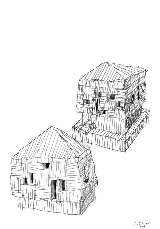 Michele De Lucchi, Studi per Baracche, matita su carta, 2014