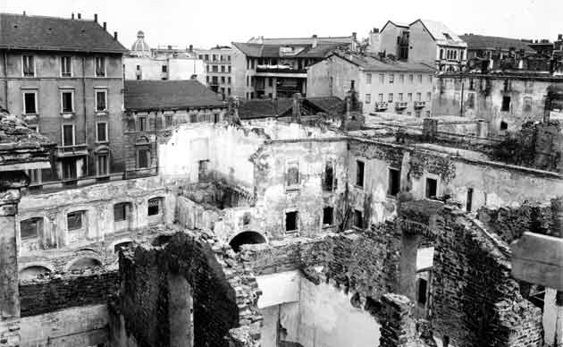 | Gli antichi chiostri dopo il bombardamento del 1943 |