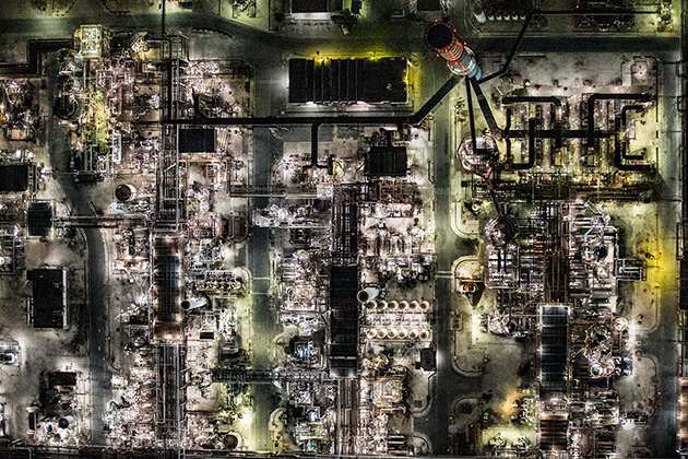 Taranto, 2015. Visione zenitale dell’Ilva, l’acciaieria più grande d’Europa con i suoi 15.450.000 metri quadrati di estensione; © Massimo Sestini |