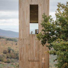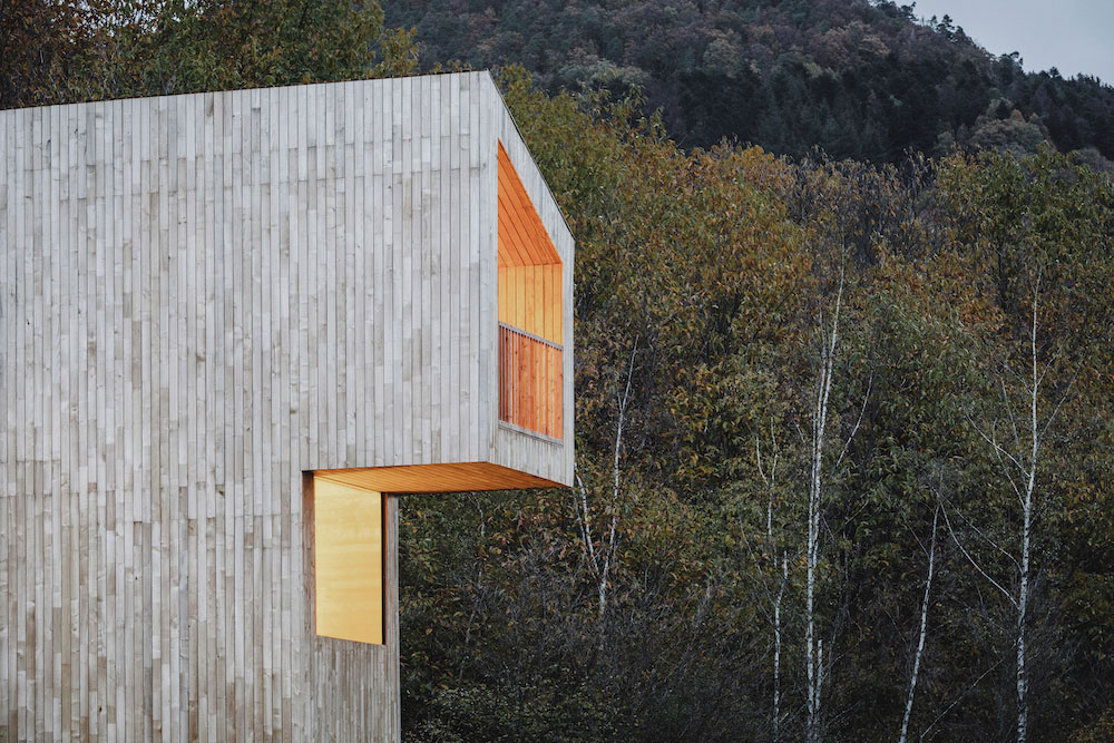 Le hytte ‘Tre’ (‘Albero’) si elevano su tre piani, Florent Michel @11h45.