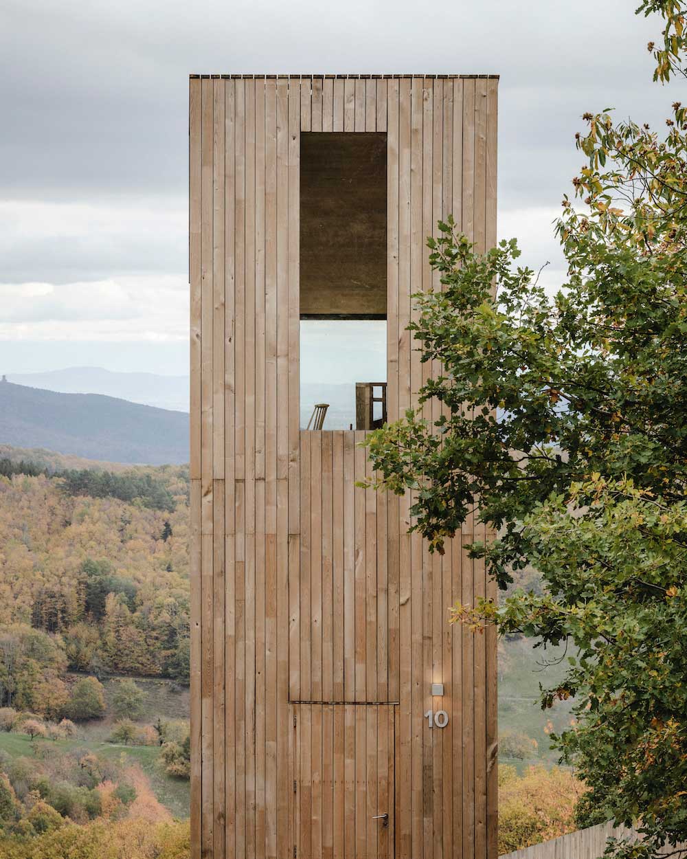 Spazio, privacy, calma, sobrietà, natura: di fronte al paesaggio, gli ospiti possono trovare un’altra essenza di bellezza e comfort nei colori mutevoli delle stagioni, nelle luci e nelle ombre della natura. L’obiettivo del progetto è stato infatti quello di creare un luogo da vivere, un habitat per accogliere le persone e portarle a sperimentare un nuovo modo di vivere l’ambiente naturale in armonia con il paesaggio.