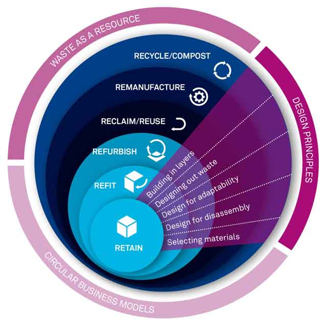 Tra gli ospiti internazionali dell’edizione 2016 ci sarà anche David Cheshire, Regional Director di AECOM, multinazionale anglosassone di progettazione e costruzione di opere di ingegneria, consulente per la sostenibilità, l’energia e l’ambiente e autore di Building Revolutions, da poco in distribuzione. «Se applichiamo i principi dell’economia circolare al mondo del real estate e delle costruzioni – afferma Cheshire – dobbiamo pensare di progettare “a strati”, minimizzare gli sprechi, selezionare materiali e componenti, costruire tenendo presenti i processi di disassemblaggio e l’adattabilità. Parliamo di una vera e propria rivoluzione del pensiero che deve coinvolgere l’industria: lo scarto deve essere ridefinito come una risorsa di valore e gli edifici devono diventare delle “banche di materiali” per le future generazioni. Possiamo raggiungere questo obiettivo creando costruzioni che possano essere smontate, in parte o completamente, per poter riusare le diverse componenti, recuperare i materiali e ricostruire gli interi edifici in un altro luogo».