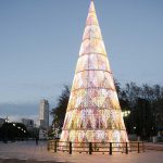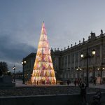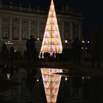 Irrinunciabile, nella classica iconografia natalizia, l’albero di Natale in Plaza de Oriente disegnato da Teresa Sapey diventa una piramide intorno alla quale si avvolgono forme di cuore, forse formate da ali di angeli che scendono verso la terra.