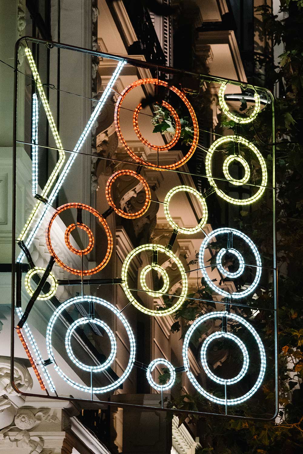 È questa tradizione che, grazie alla flessibilità dei Led, lo studio Sapey & Partners rilegge trasformando Calle Serrano, la via dello shopping madrileno, in una sequenza di portali colorati entro i quali si inscrivono stilizzate geometrie di simboli tradizionali, ripresi anche, in forma di cubo, ai lati della strada, sopra negozi ancora in dubbio sugli orari di apertura (nella gallery, foto ©Rafael Vilallonga Hohenlohe).