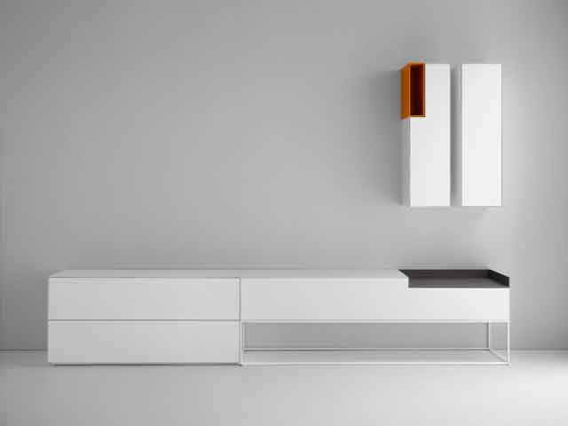 La versatilità del sistema permette di realizzare combinazioni funzionali e personalizzabili che si adattano allo spazio e alle necessità consentendo una maggiore libertà espressiva. Inoltre, la collezione è stata migliorata dal punto di vista funzionale con l’introduzione del nuovo sistema di apertura dell’anta e un più semplice e intuitivo sistema di passaggio cavi per gli elementi elettrificati. La serie offre un elevato grado di personalizzazione di alcuni componenti come i vani a giorno, l’elemento rotante ed il vassoio disponibili in un’ampia gamma di colori – arancione, rosso scuro, blu avio, giallo senape, grigio antracite, sabbia e verde – oltre che nelle finiture legno naturale, legno naturale grigio e legno naturale nero che possono essere sostituiti anche dopo l’acquisto.