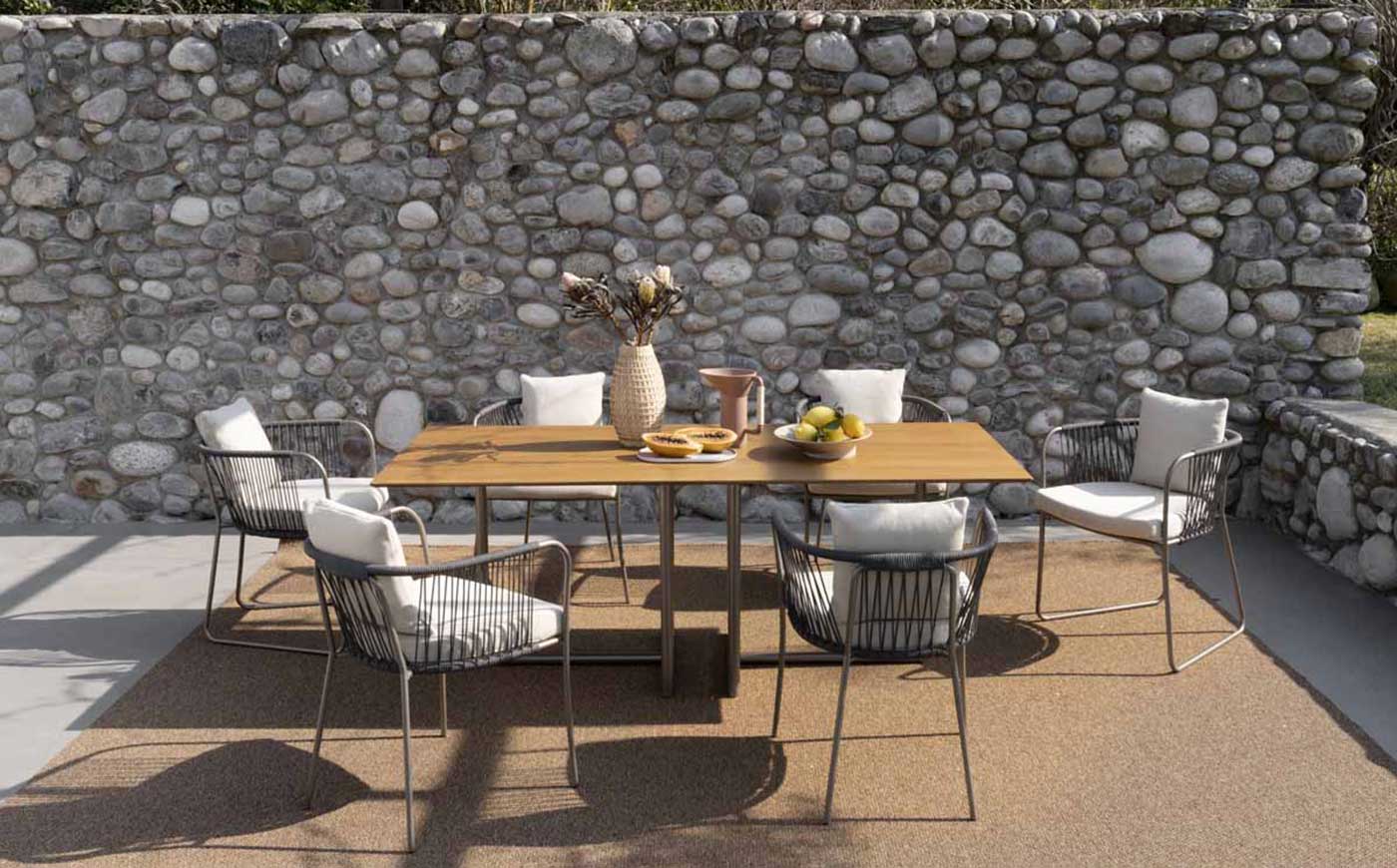 La collezione Nido, dai toni intensi, presenta un’inedita trasversalità di utilizzo. L’equilibrio di forme e volumi ben si adatta a diversi contesti abitativi, dai terrazzi dell’ambiente home alle lounge outdoor delle strutture ricettive. Il particolare sistema di corde incrociate intorno alla struttura di metallo crea un reticolato avvolgente in ogni schienale, dal divano alle morbide poltrone. Le sedute si completano di miste e confortevoli cuscinerie: tinte unite si alternano a motivi geometrici.