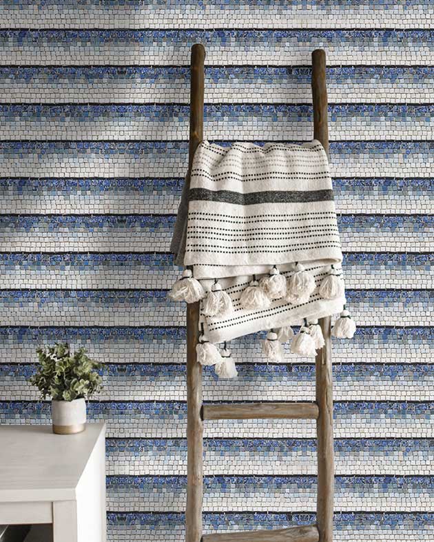 La collezione Filare del catalogo Contemporaneo di Friul Mosaic (design FM Studio) permette di creare numerose combinazioni di mosaici. Non solo per colori e materiali ma anche per scala: il disegno originale può infatti essere replicato su misura variando dimensione e numero delle tessere.