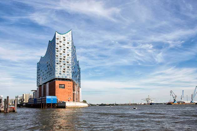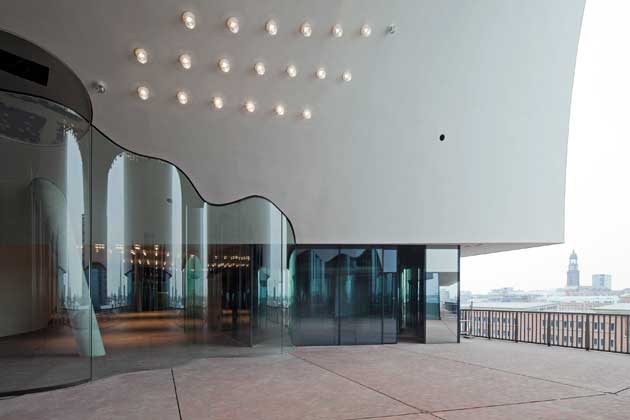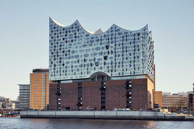 Costruito sopra il vecchio magazzino portuale Kaispeicher A (di cui sono state conservate solo le pareti perimetrali in mattoni) e staccato da questo per ragioni di acustica, il luccicante volume specchiato che accoglie due delle tre sale da concerto e l’hotel è anche uno straordinario progetto strutturale che poggia su 1.700 plinti in calcestruzzo armato, oltre che un’azzardata sintesi di vecchio e nuovo.