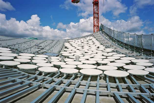 Sul piano ingegneristico è la struttura in acciaio del tetto, composta da elementi lunghi fino a 25 metri, a reggere la sottostante Grand Hall, eliminando così la necessità di pilastri interni di supporto.