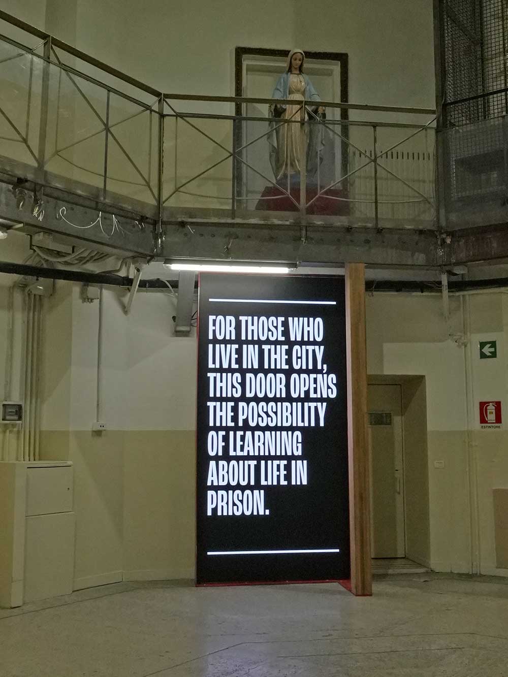La Porta della Speranza di Stefano Boeri Architetti si compone di due installazioni, una nel panopticon della casa circondariale, dove diventa un’interfaccia permanente dedicata alle opportunità di lavoro, e l’altra all’aperto, in piazza Arnaldo, per condividere con la popolazione attraverso il videowall informazioni sulla realtà carceraria.
