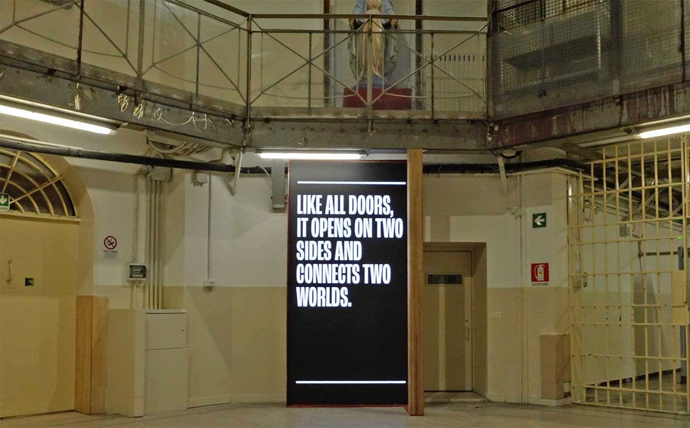 La Porta della Speranza di Stefano Boeri Architetti si compone di due installazioni, una nel panopticon della casa circondariale, dove diventa un’interfaccia permanente dedicata alle opportunità di lavoro, e l’altra all’aperto, in piazza Arnaldo, per condividere con la popolazione attraverso il videowall informazioni sulla realtà carceraria.