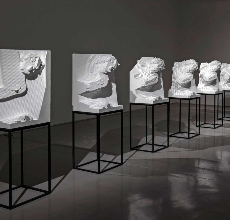 “Proserpina #A_S4” è una serie di quattro grandi sculture di marmo di Carrara, incompiute variazioni algoritmiche del celebre capolavoro barocco di Gian Lorenzo Bernini esposto alla Galleria Borghese di Roma. Collocate in prossimità del teatro del parco, le sculture documentano la logica e l’estetica del processo di creazione, l’azione materiale di un braccio robotico controllato da un algoritmo.
