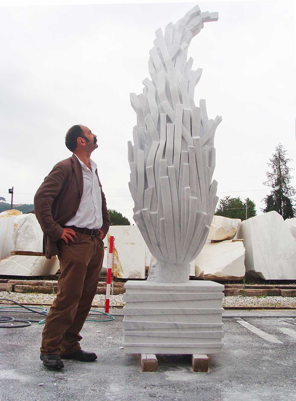 «Credo che l’arte sia conoscenza dell’incoscienza – dice Micheli a proposito delle relazioni tra Architettura e Arte – In un momento di ozio un cipresso era davanti ai miei occhi ed è stato il primo soggetto, poi è arrivata casualmente l’idea di scolpire una capra e successivamente il corpo umano. Prima le mie mani, il mio viso e poi parti di corpi femminili. L’ozio mi ha permesso di pensare e dare forma alla curiosità. Queste sculture non sono provocatorie o ribelli ma la loro semplicità dell’essere normali, le rende sorprendenti. Ozio, curiosità e scultura».