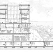 Con il titolo di felliniana memoria ‘E la nave va’, il progetto lascia intatto l’esistente, cui aggiunge un nuovo volume in legno e vetro su quattro livelli la cui ‘pelle’ tecnologica è capace di proiettare luce, suoni e immagini, e affronta lo spazio esterno stabilendo, con quattro tagli trasversali che attraversano il grande edificio, nuovi collegamenti naturalistici tra la città e il mare.
