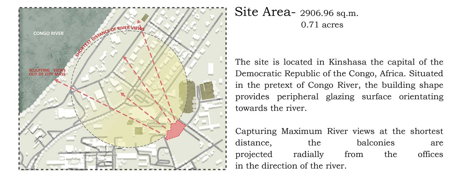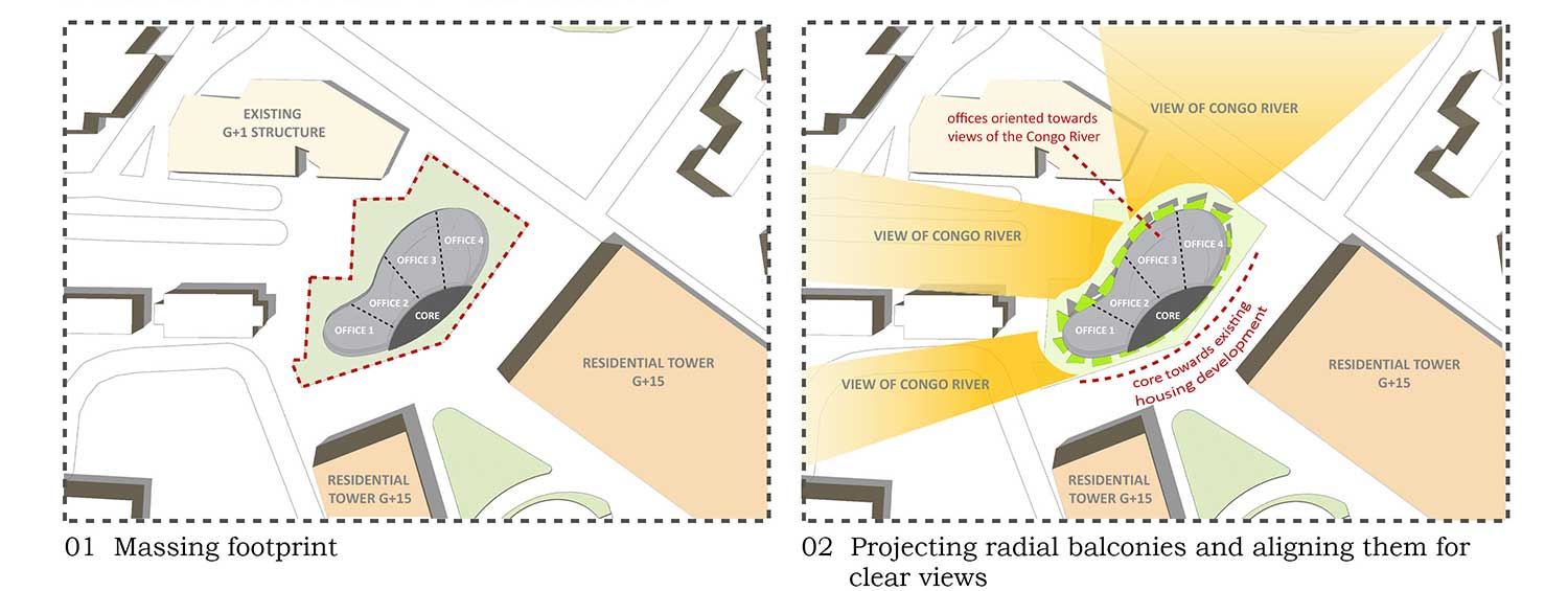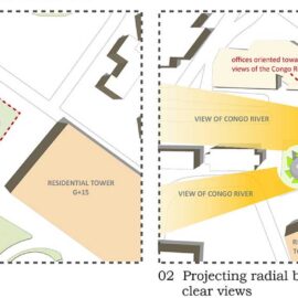 Gli uffici sono invece tutti orientati verso nord e nord-ovest con le migliori viste sul vicino fiume Congo e favoriscono l’ingresso della luce naturale indiretta negli ambienti interni.