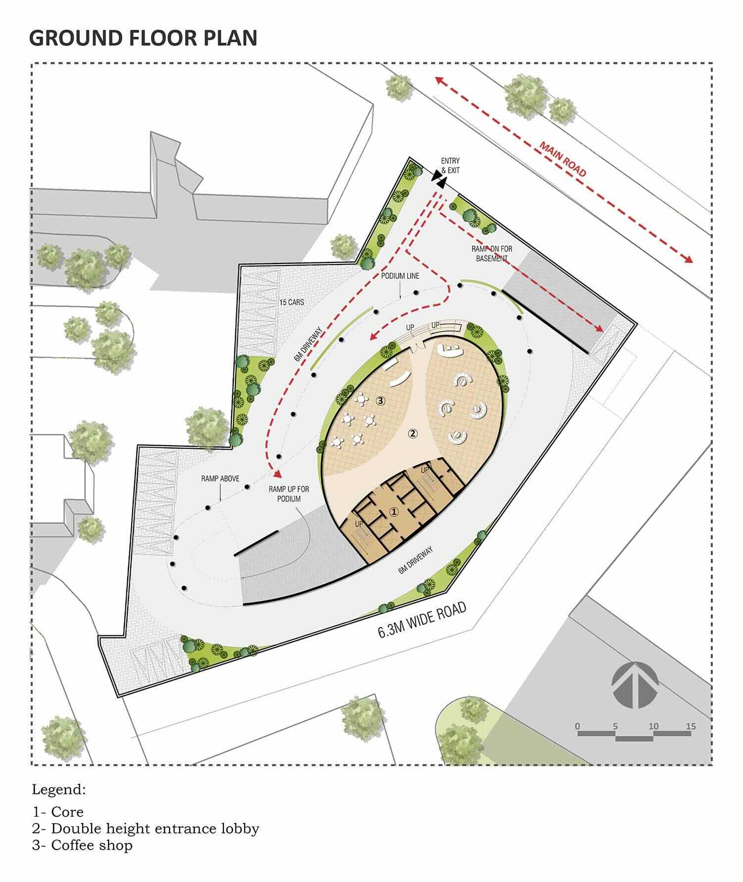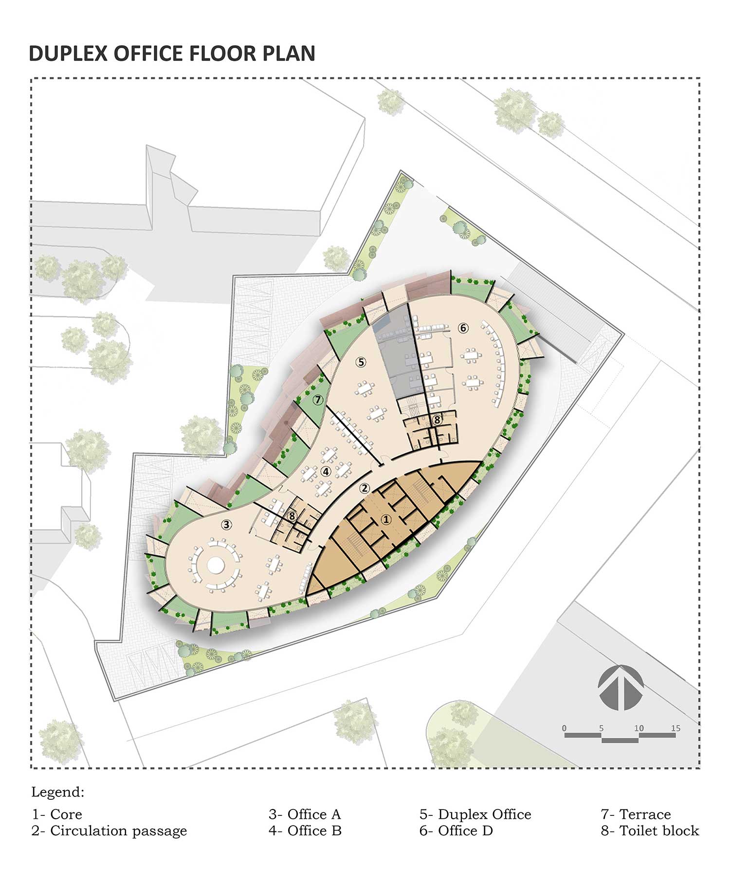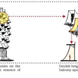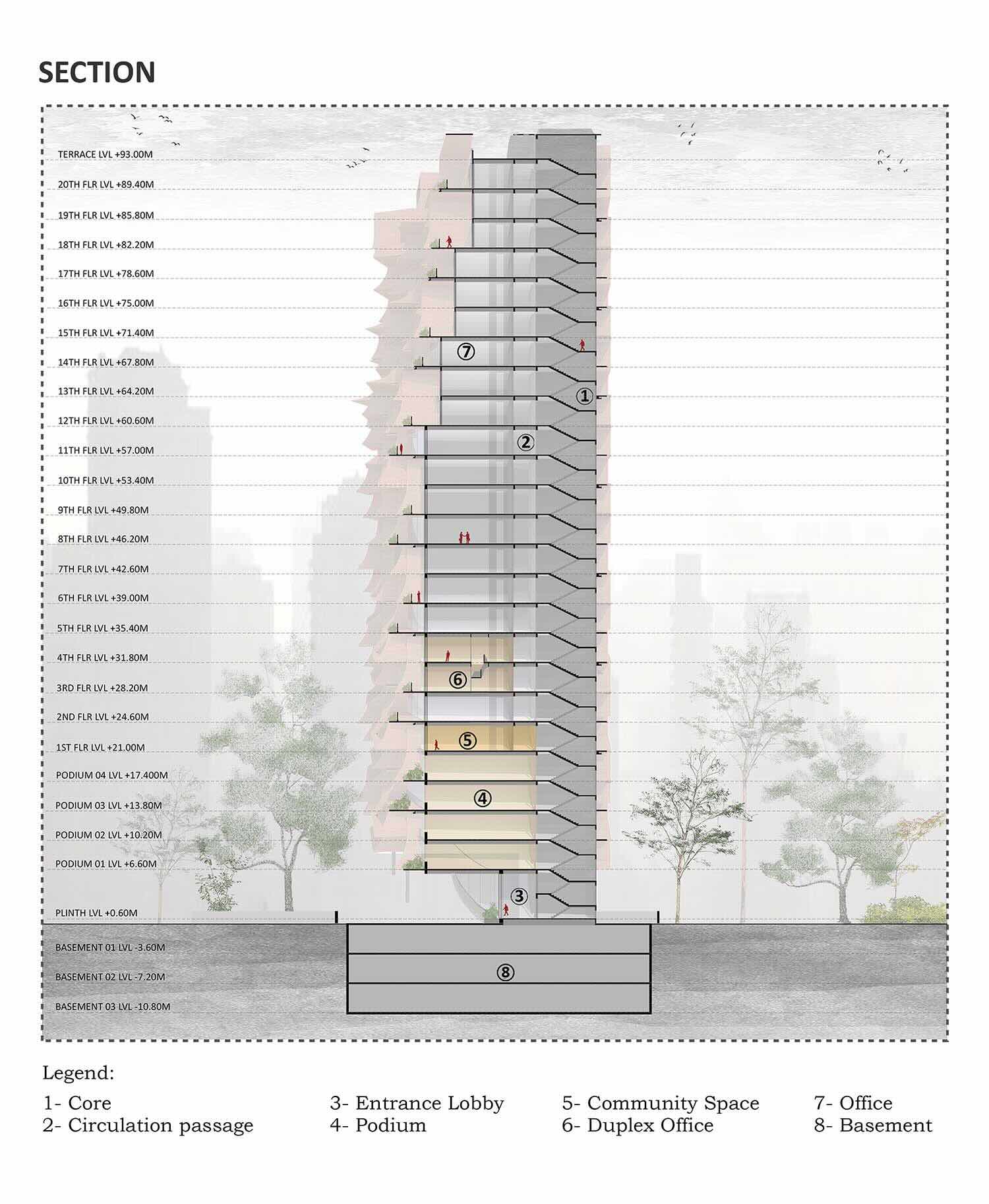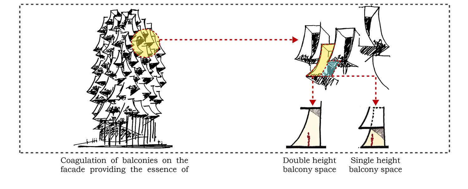 Il filo conduttore el progetto proviene dalla foresta africana: la struttura replica quella di un fitto albero attraverso balconi parabolici che ne definiscono la facciata. I balconi angolari si sovrappongono ai piani superiori, fornendo spazi a doppia altezza per ogni ufficio.
