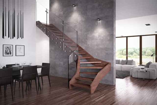 Visio è il nuovo modello di scale da interni firmate Rintal caratterizzata dalla combinazione tra struttura in legno e ringhiera in vetro, una soluzione solida ma visivamente leggera adatta a ogni tipo di ambiente, contemporaneo o classico.