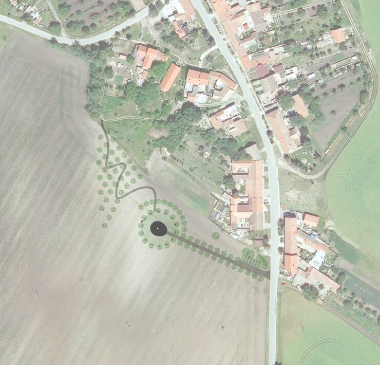 Il progetto di Rcnksk, studio praghese fondato da Filip Kosek e Jan Říčný, completato con Michal Říčný nel 2024, emerge come un faro nell’ondulato paesaggio agricolo della zona.