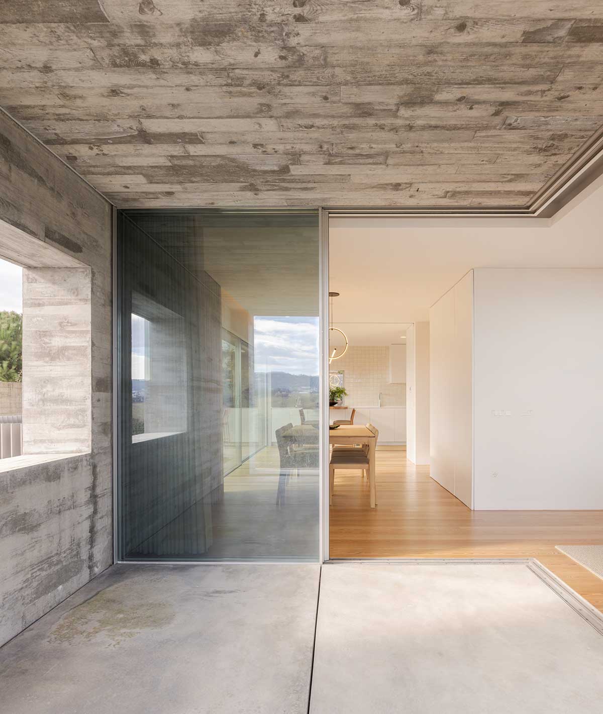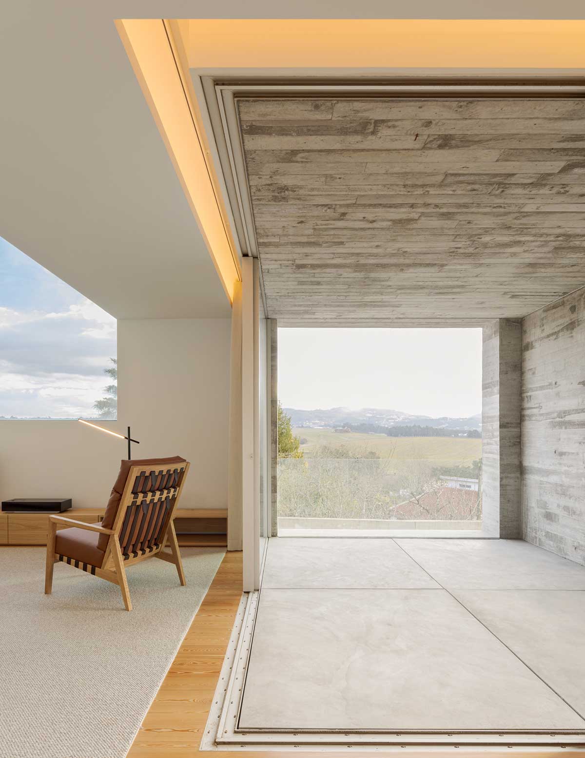 +4 Se forma e materiali volevano essere di rottura con l’anonimo contesto circostante, fatto di case con tetti a falda, il progetto di spaceworkers per questa casa a Sobrado, piccolo centro 25 chilometri a est di Porto, si caratterizza per le bucature, di forma e dimensioni diverse, che negli interni diventano quadri sempre diversi sul paesaggio.