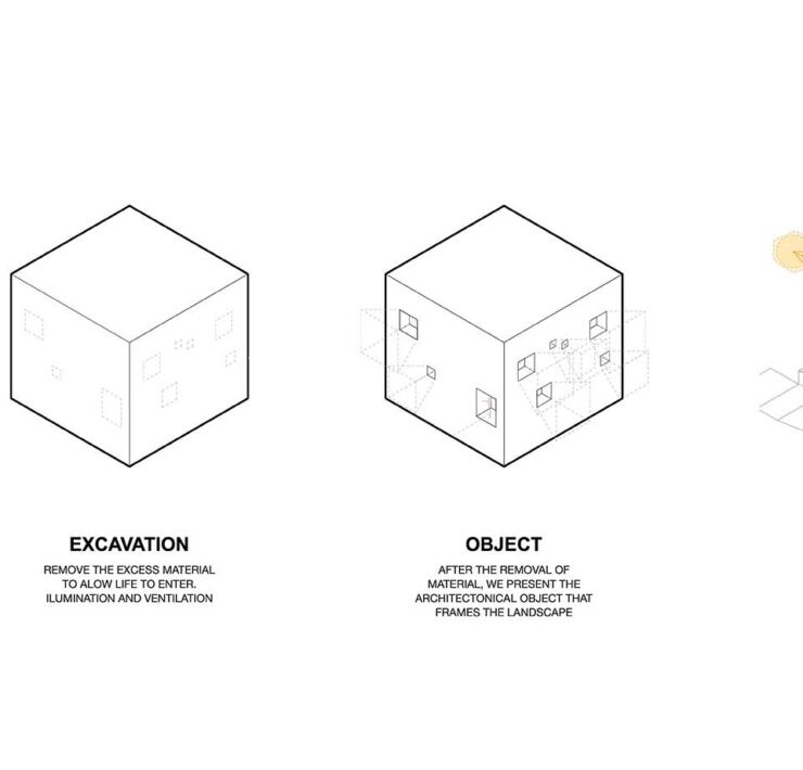 Se forma e materiali volevano essere di rottura con l’anonimo contesto circostante, fatto di case con tetti a falda, il progetto di spaceworkers per questa casa a Sobrado, piccolo centro 25 chilometri a est di Porto, si caratterizza per le bucature, di forma e dimensioni diverse, che negli interni diventano quadri sempre diversi sul paesaggio.