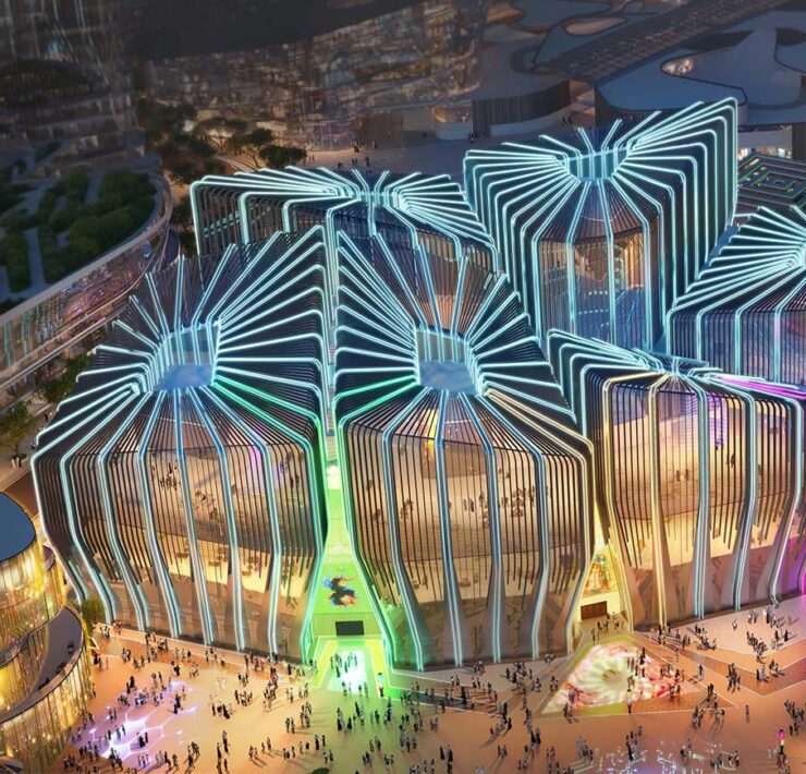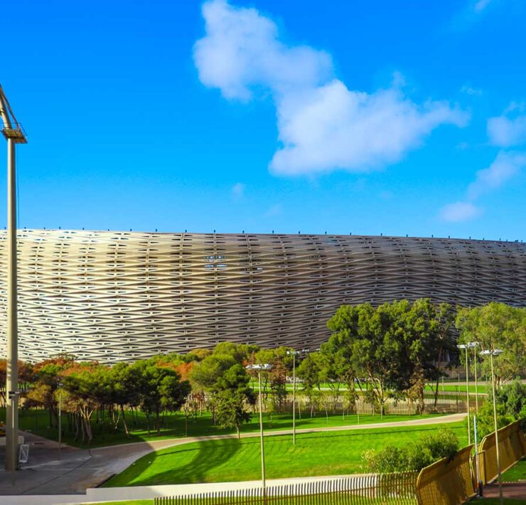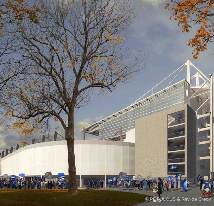 Il progetto prevede anche il rinnovo e la valorizzazione dello stadio, che era stato inaugurato nel 2004, con un quarto anello (adiacente a quello delle tribune, offrirà 6.800 mq di spazi polifunzionali, inclusa un’area hospitality premium) e una nuova facciata – rivestita da una pelle led programmabile in funzione dei diversi eventi, dalle partite di calcio ai concerti – in grado di modulare luce e calore per offrire zone d’ombra nelle aree di passaggio e migliorare il comfort degli spettatori.