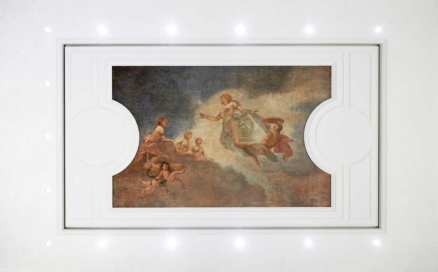 I pannelli restaurati con i graffiti di Afro Basaldella che negli anni Cinquanta del Novecento decoravano le pareti del Caffè Aragno