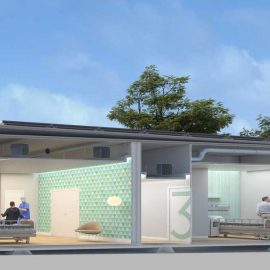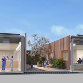 Il progetto ricomprende gli elementi fondamentali per l’ospedale del futuro, in uno spazio limitato e sviluppabile in tempi brevi. Un ospedale realizzato in soli tre mesi – un terzo del tempo rispetto a una struttura tradizionale – grazie ai monoblocchi che ne consentono anche il rapido smontaggio e trasporto.