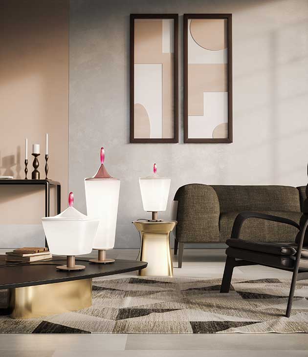 Lou è una collezione di tre “oggetti di luce” disegnati da Aldo Cibic per Venini.
