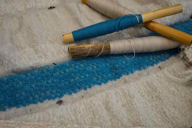 Nel processo di lavorazione dei tessuti della tradizione calabrese si contano fino a 1.800 fili di ordito che bisogna far passare nei licci dei telai, in un preciso ordine matematico, ognuno diverso per ogni tipo di disegno.