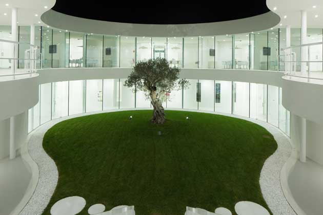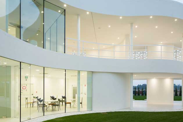 Innovativo per la leggerezza dell’architettura e per le scelte tecnologiche adottate, tra le quali assumono particolare rilievo l’autonomia energetica – per la quale il complesso fa ricorso sia alla geotermia sia al fotovoltaico – e le soluzioni illuminotecniche adottate.