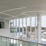 Per gli scenografici interni, Syngh ha scelto corpi illuminanti di Masiero. L’azienda trevigiana, oltre a un ricco catalogo di collezioni dallo stile volutamente trasversale, è infatti in grado di realizzare composizioni luminose uniche, su misura del singolo progetto di interni.
