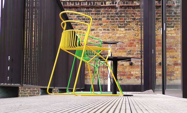 Ribelle, design Favaretto & Partners, la seduta indoor/outdoor in tondino d´acciaio di Luxy |